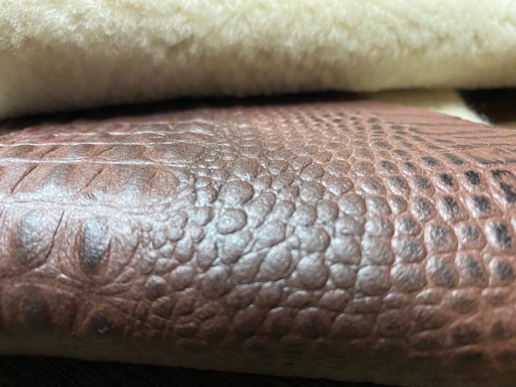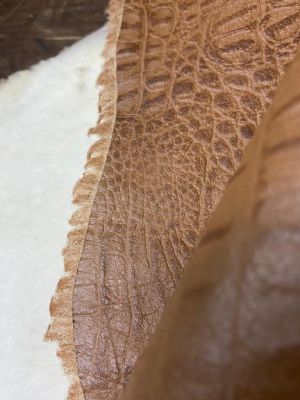 Cueros curtidos, teñidos y acabados para la confección de botas y bolsos. Con estampado o sin