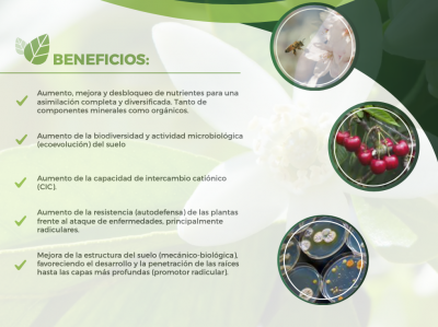 Aumento, mejora y desbloqueo de nutrientes para una asimilación completa y diversificada. Tanto de componentes minerales como orgánicos.
